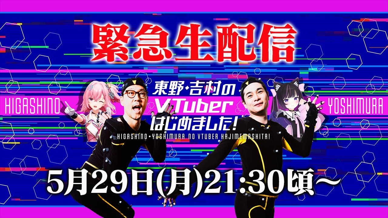 ■同チャンネルでは、女性アイドルVTuberのヒガミに東野が、ヨシミに吉村が変身。初回ではマンミ(ネルソンズ・和田まんじゅう)をゲストに迎え、すねバットにチャレンジしている。東野は「空き時間で芸人がやってる原始的なことをVTuberという新しい技術でコンパクトにまとめてみました! 将来的には大きな会場でライブなどもできたらと勝手に思ってます! 興味ある方、ぜひチャンネル登録お願いします!!」と呼びかけた。